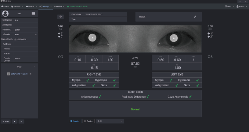 Mediview - це система керування пацієнтами, яка допомагає лікарям вести і архівувати результати обстежень. Результати тестування, отримані на V100, передаються в Mediview по Wi-Fi з'єднанню.