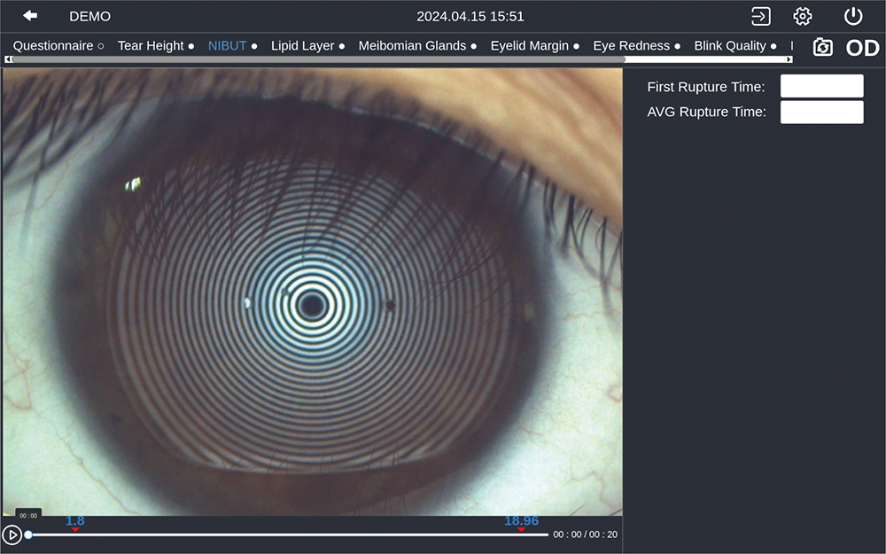 Відео високої чіткості знімається за допомогою інфрачервоного джерела світла і автоматично аналізує частоту моргання, інтервал між морганнями, неповне моргання і співвідношення неповних моргань.