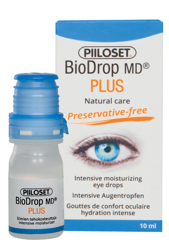 Piiloset BioDrop MD Plus — це інтенсивний зволожувач без консервантів, призначений для полегшення помірних і важких симптомів сухого ока.