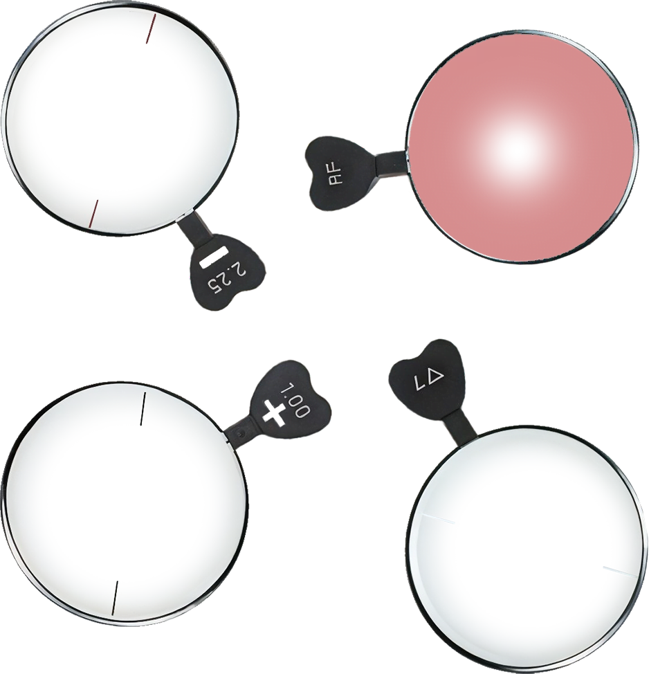Сферичні лінзи: 28 пар для увігнутих (-) і опуклих (+):